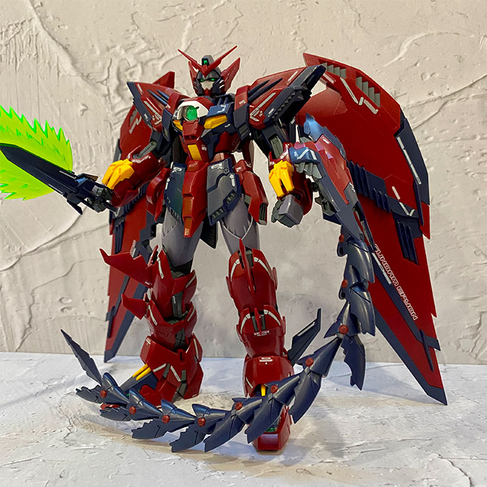 MG yang overall punya warna merah wine satu ini ada di series Mobile Suit Gundam Wing, yang awalnya dipiloti oleh Heero Yuy kemudian diberikan Zechs Merquise. Dari tampilan, MG Gundam Epyon ini memang gapunya senjata Rifle ya, kit satu cuma punya Beam Sword, Heat Rod dan Shield. Tapi itu yang bikin kesan minimalis dari kit ini makin menonjol, karena kamu bisa lihat kalo warna kit ini merah wine. Dan cocok banget buat jadi center buat pajangan kit kamu yang lain, dan ditunjang dari equipmentnya yang ga terlalu makan space buat dipajang.