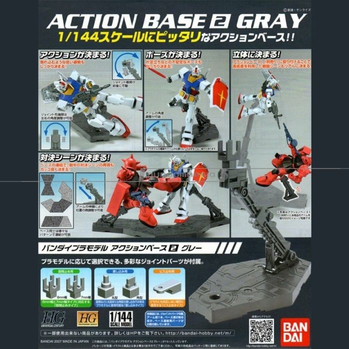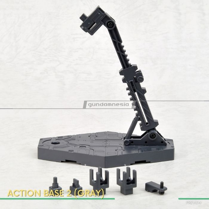 MISP Bandai, Action Base 2 warna Abu-abu untuk kit dgn skala 1/144 atau HG/RG. Cocok digunakan untuk membantu menghasilkan pose Gunpla dgn lebih baik.