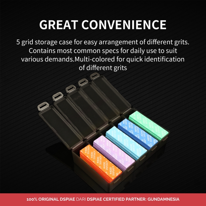 Tersedia dalam Full Set: 5 grit berbeda #400 #800 #1000 #1200 #1500 dengan jumlah masing-masing 8pcs (total 40pcs dalam 1 set)