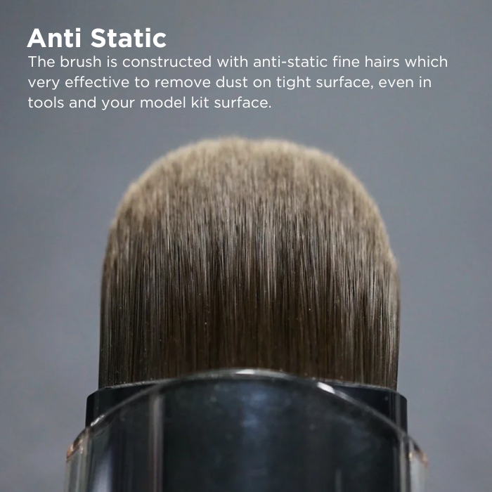 Dust Brush dari GUNPRIMER yang satu ini sangat efektif banget buat kamu pake untuk ngebersihin debu atau partikel-partikel kecil yang nempel di permukaan, baik di tools ataupun di modelkit mu.