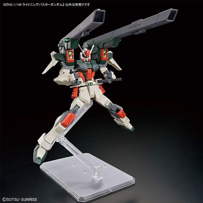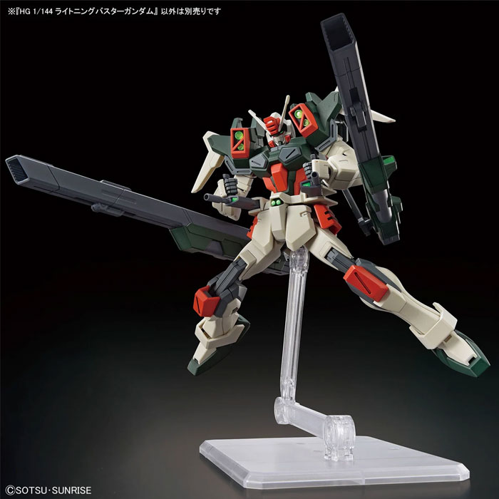 Lightning Buster Gundam yang berasal dari Buster Gundam sudah mendapat upgrade di beberapa bagian. Seperti pemasangan dua beam gun di bagian waist nya untuk serangan dekat dan dua beam cannon di bagian belakang yang bisa berpindah ke bagian atas punggung maupun di bawah lengan gundam untuk menembak musuh dengan daya tembak yang cukup besar. Dan juga tambahan penyimpanan missile pod yang bisa dibuka.
