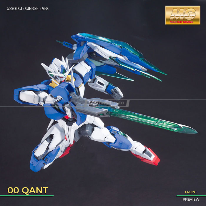 Kit Master Grade Quanta hadir dengan gimmick yg lebih bervariasi. Sword bits nya dapat dipasangkan di GN Sword V untuk menghasilkan Buster Sword ataupun Buster Rifle mode. Dalam set ini, kamu juga akan mendapatkan 1 buah Action Base bewarna hitam untuk membantu memposekan gunpla yg satu ini.