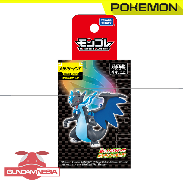 Si naga biru legendaris hadir dalam versi Moncolle! Mega Charizard X tampil gagah dengan sayap besar, warna hitam kebiruan, dan efek api biru yang khas banget. Detailnya keren dan bahan figurnya kokoh—pas banget buat kolektor atau penggemar Pokémon sejati.