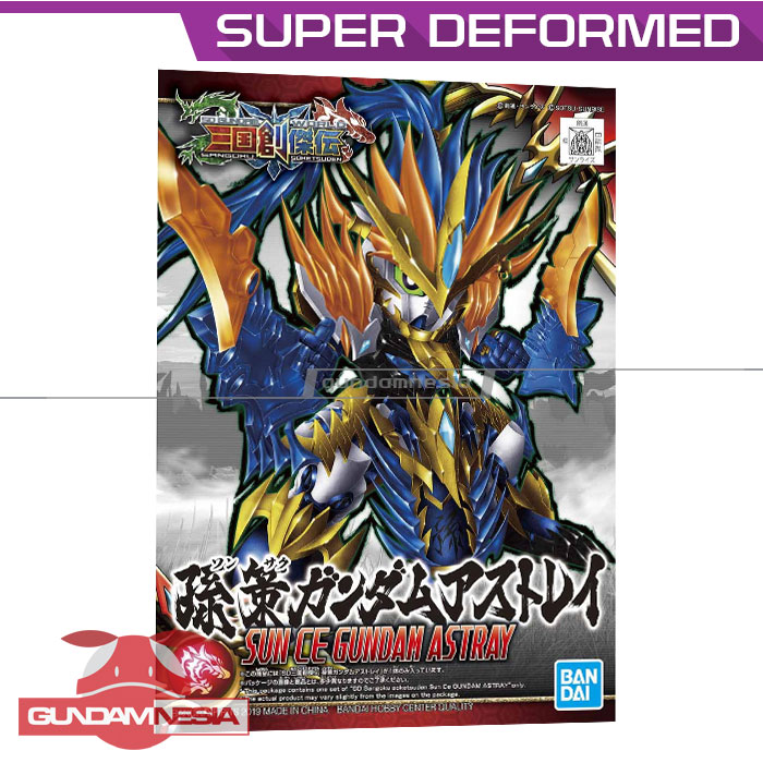Memiliki perpaduan warna putih, emas, biru dan orange yang cocok dengan Sun Ce Gundam Astray ini. Kit ini punya senjata utama yang bisa berubah menjadi 3 form. Baik itu menjadi backpack, sepasang tonfa kembar dan pedang yang sangat besar.
